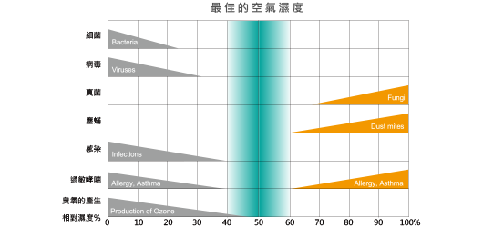 理想的濕度可保護我們的呼吸健康,最舒適合宜的空氣濕度為40%~60%。